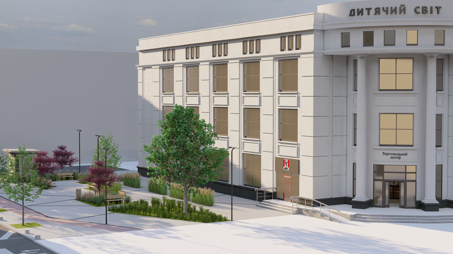 Заклад швидкого громадського харчування “KFC” розпочав роботи з благоустрою. Незабаром простір біля торговельного центру оновиться.